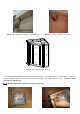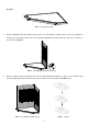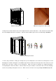 FIG 9 Inserting Benches FIG 10 Securing Benches with screws 10. Align the Front Panel with the Floor Panel, Right Side Panel, and Left Side Panel. the Left and Right Side Panels respectively. Next, latch the Front Panel with Note: Be cautious with the glass door to avoid breakage. See FIG 11. FIG 11 Assembling Front Panel 11. Place (flop) cords/wires coming up to through the top of the wall panels to the outside of the wall panels to avoid damaging the cords/wires during the roof installation.