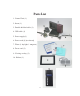 Parts List 1. Control Unit (1) 2. Insert (1) 3. Double shielded cable (1) 4. USB cable (1) 5. Power supply(1) 6. Power cord(1) [not shown] 7. Filters (1 daylight, 1 tungsten) 8. Focus card (2) 9. Viewing overlay (3) 10.