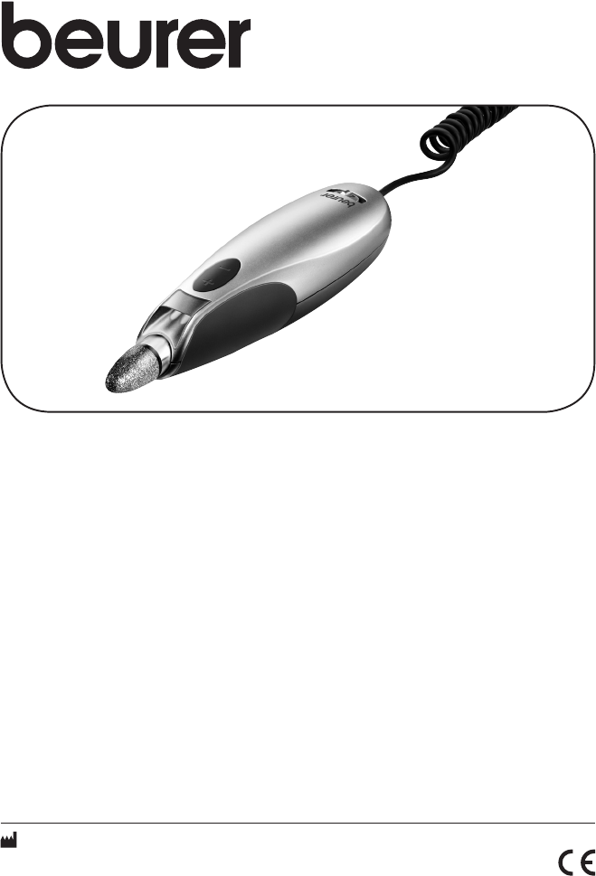 F – Sapphire milling cutter, round This accessory attachment is for the careful removal of corns. When using this attachment, please remember when removing the layer of skin from the corn that you will quickly penetrate deeper into the skin and this could injure the periosteum. G – Needle milling cutter The needle milling cutter is a precision tool. Please proceed cautiously when using this attachment, since careless use can quickly cause injury.