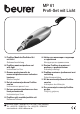 MP 61 Profi-Set mit Licht D Profiline Maniküre/Pediküre-Set mit Licht Gebrauchsanleitung G Profiline manicure/pedicure set with light Instruction for Use F Gamme professionnelle de manucure/pédicure avec indicateur lumineux Mode d´emploi E Set de manicura/pedicura Profiline con luz Instrucciones para el uso I Set per manicure/pedicure con luce linea professionale Instruzioni per l´uso T Profiline ışıklı manikür/pedikür seti Kullanma Talimatı r Набор для маникюра и педикюра с подсветкой Инструкция по прим