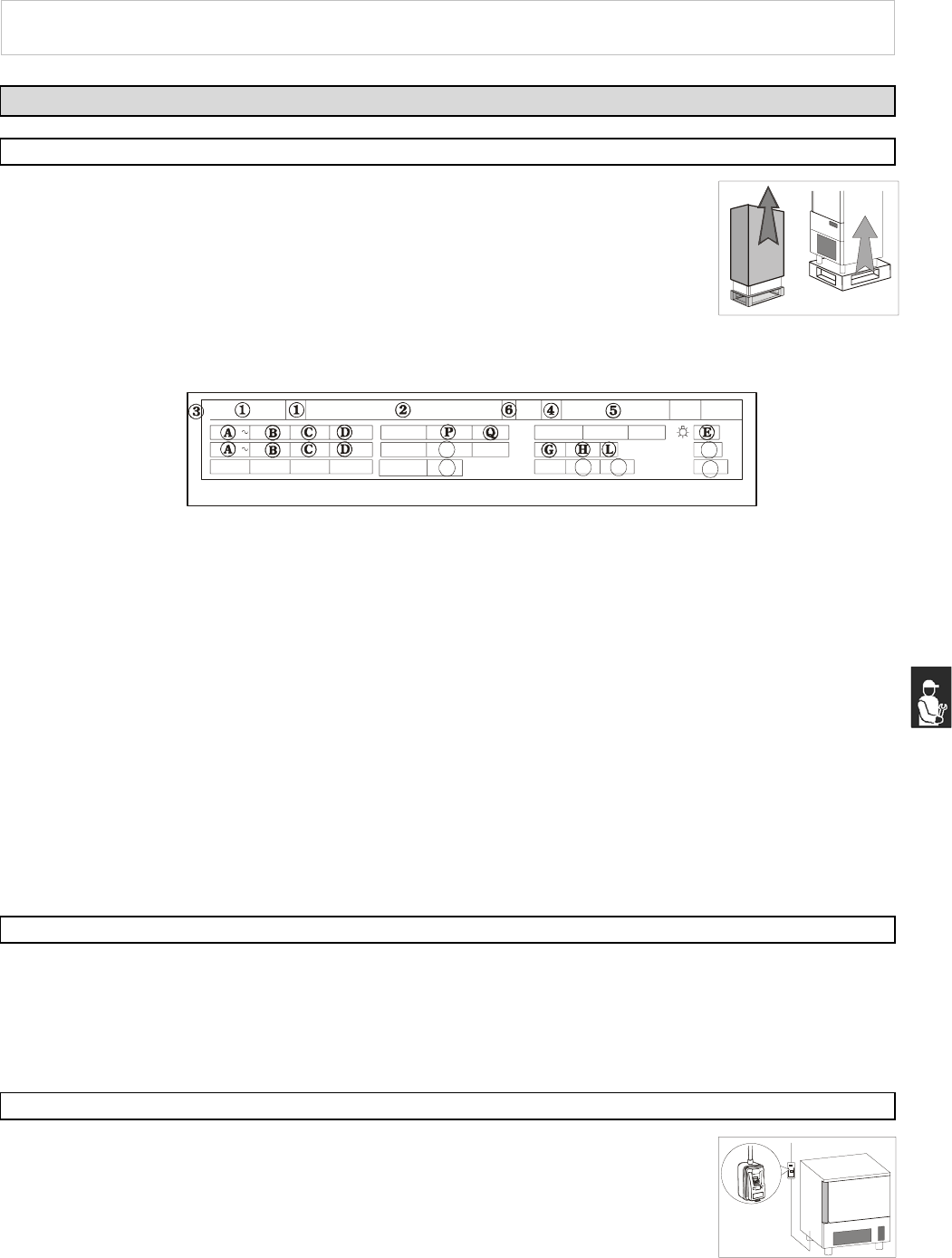 Make sure the technical wiring specifications comply with the ratings (i.e., V, kW, Hz,