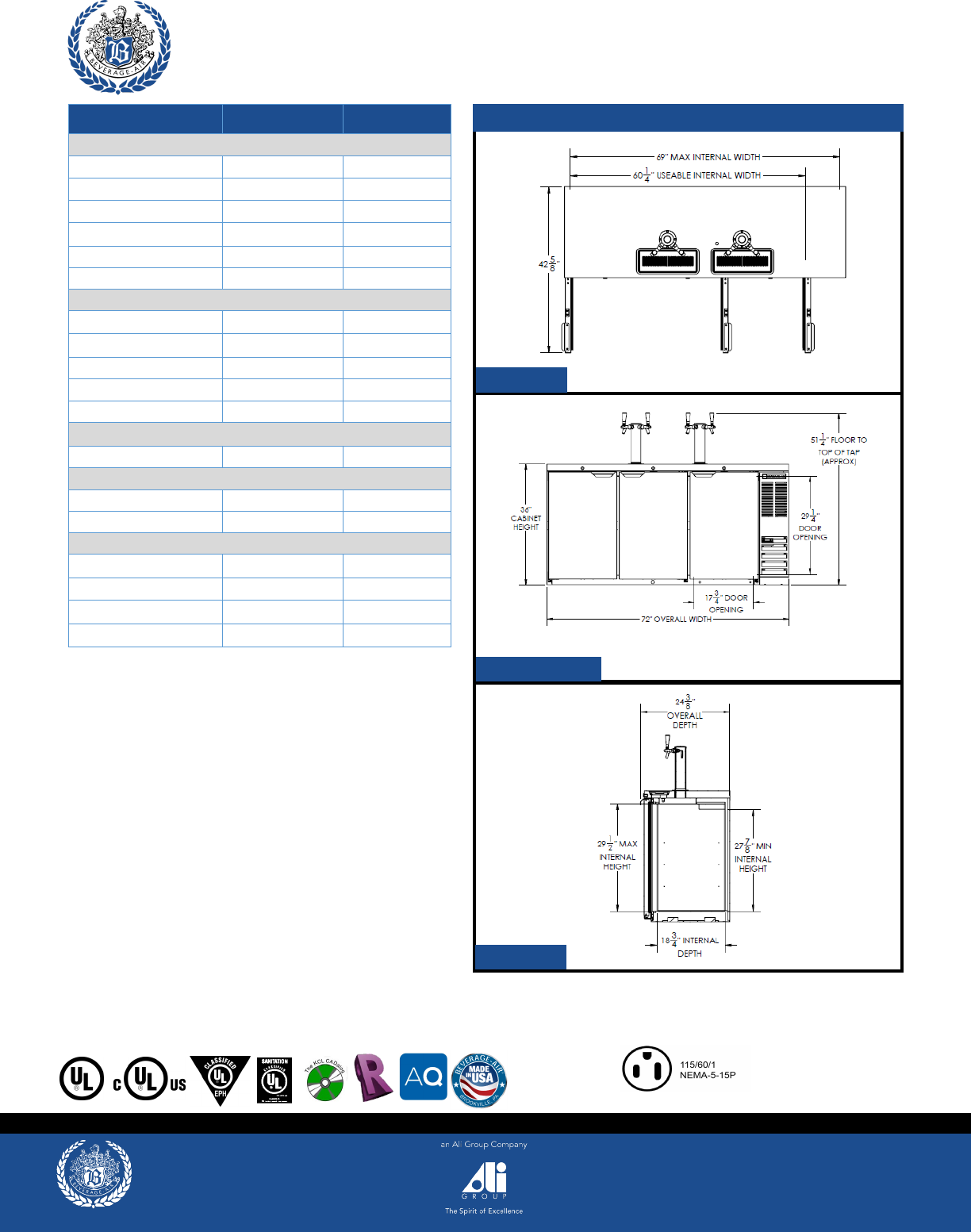 Internal Width Overall (in) 60 1/4” 60 1/4”