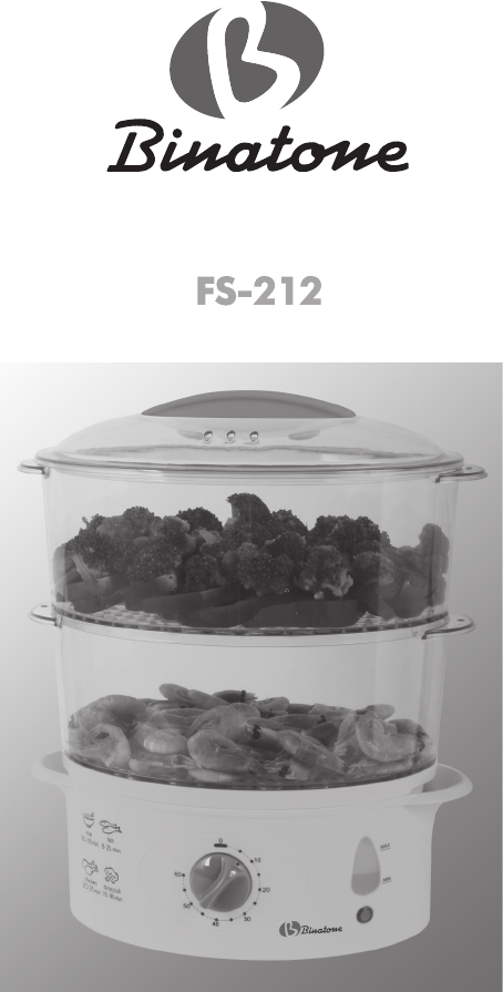 Food Steamer FS 212 Please read the safety instructions carefully before using this appliance. Please retain the instructions for future reference. SAFETY MEASURES When using your appliance, the following basic safety precautions should always be followed: Before using for the first time, check that the appliance voltage is the same as your local supply. Only use the appliance for the purposes stipulated by the instructions. Only use attachments supplied with the equipment.