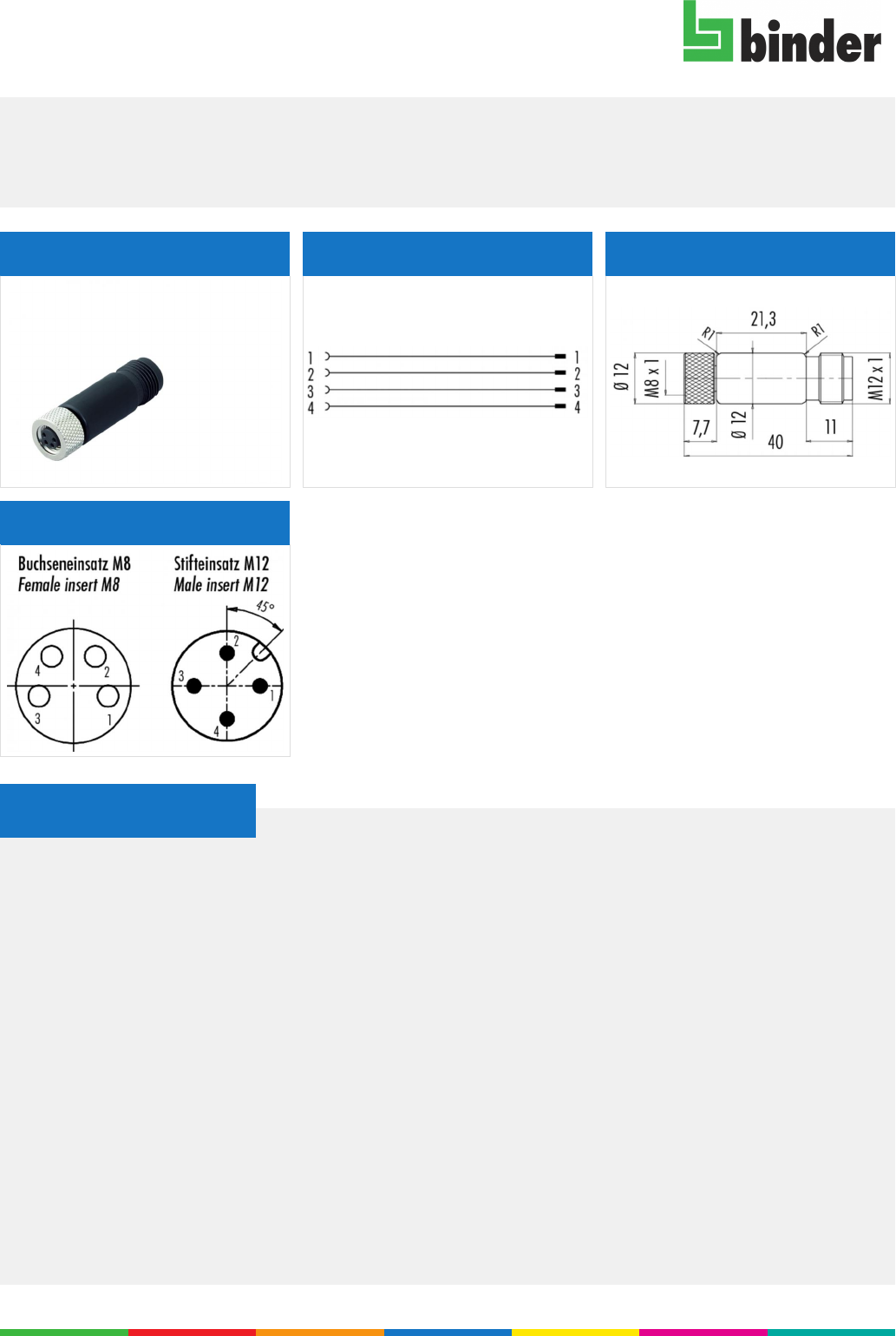 Bezeichnung M12-A Adapter, Polzahl: 4, nicht geschirmt, steckbar, IP67