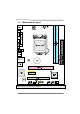 Motherboard Manual 2.6 Jumper Setting The illustration shows how to set up jumpers. When the jumper cap is placed on pins, the jumper is “close”, if not, that means the jumper is “open”. Pin opened Pin closed Pin1-2 closed JCMOS1: Clear CMOS Jumper Placing the jumper on pin2-3, it allows user to restore the BIOS safe setting and the CMOS data. Please carefully follow the procedures to avoid damaging the motherboard. 1 3 Pin 1-2 Close: Normal Operation (default). 1 3 Pin 2-3 Close: Clear CMOS data.