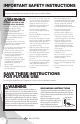 IMPORTANT SAFETY INSTRUCTIONS READ ALL INSTRUCTIONS BEFORE USING YOUR PORTABLE DEEP CLEANER. When using an electrical appliance, basic precautions should be observed, including the following: WARNING TO REDUCE THE RISK OF FIRE, ELECTRIC SHOCK, OR INJURY: » Connect to a properly grounded outlet only. See grounding instructions. Do not modify the 3-prong grounded plug. » Do not leave appliance when it is plugged in. Unplug from outlet when not in use and before servicing. » Use indoors only.