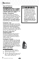Operations Cleaning with attachments continued 5. Plug in and turn the power switch to the ON position. 6. Clean by pressing the spray trigger to spray solution onto the area to be cleaned. Slowly move the tool back and forth over the soiled surface. Release the spray trigger to suction dirty water. Continue to clean in the area, working in small sections, until dirt is removed. Caution: Do Not Overwet. 7. When finished cleaning, remove and rinse tool(s) in clean, running water. 8.