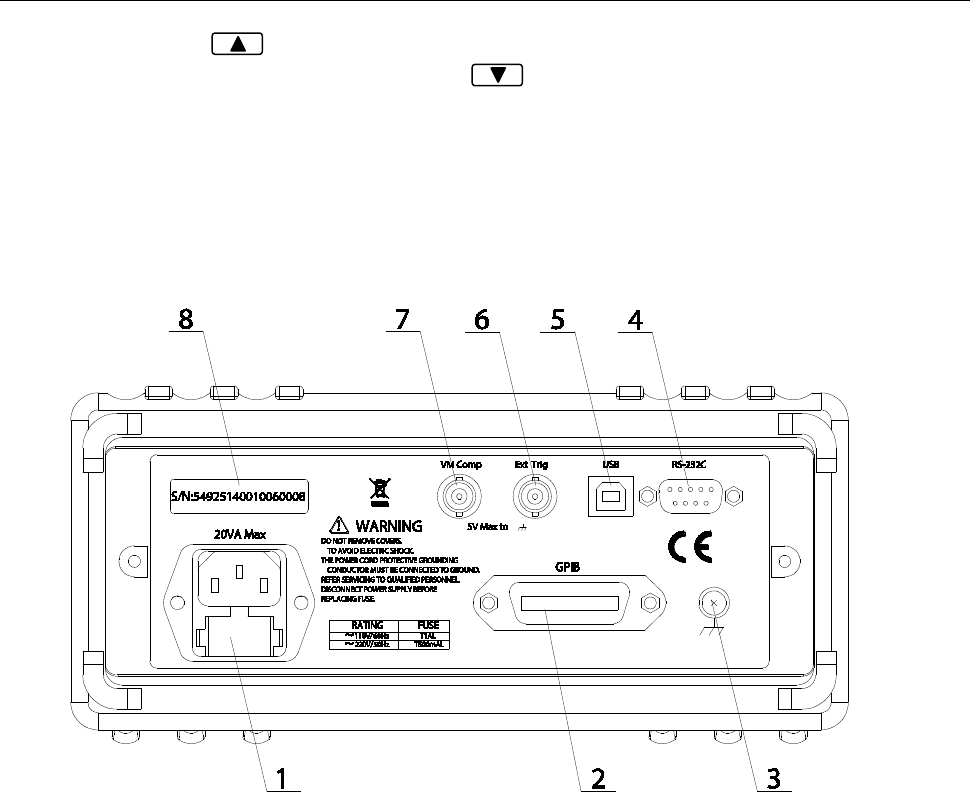 Power line fuse is used for instrument protection. (220 V/500 mA or 110 V/1 A)