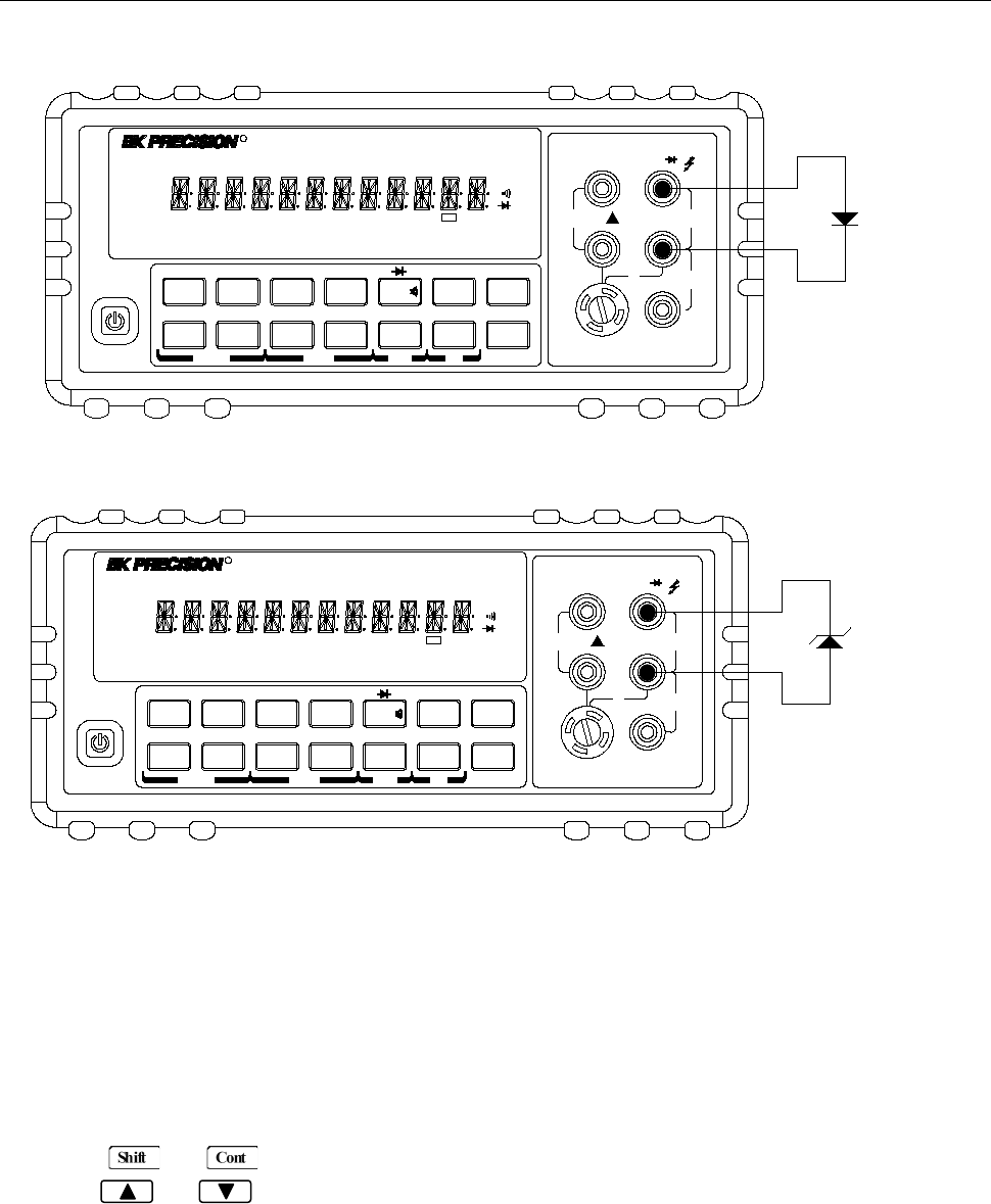 The diode test function measures voltage on the 3V range for the 1 mA test current and the 10 V range