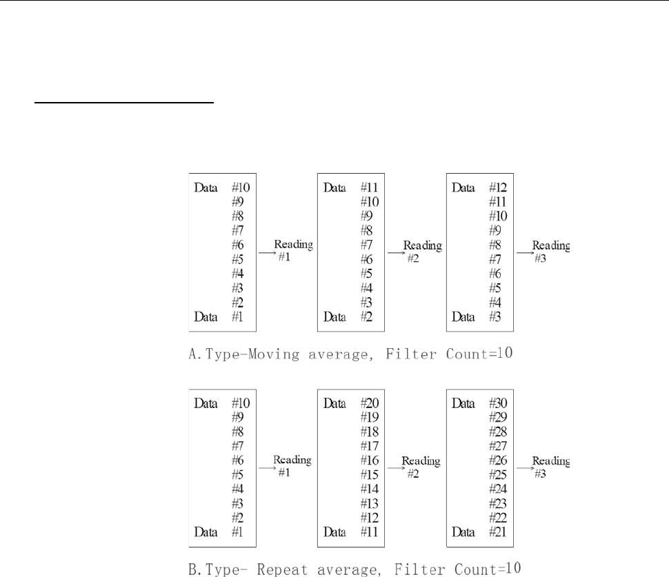 For the repeating average filter, the stack is filled and the conversions are averaged to yield a reading.