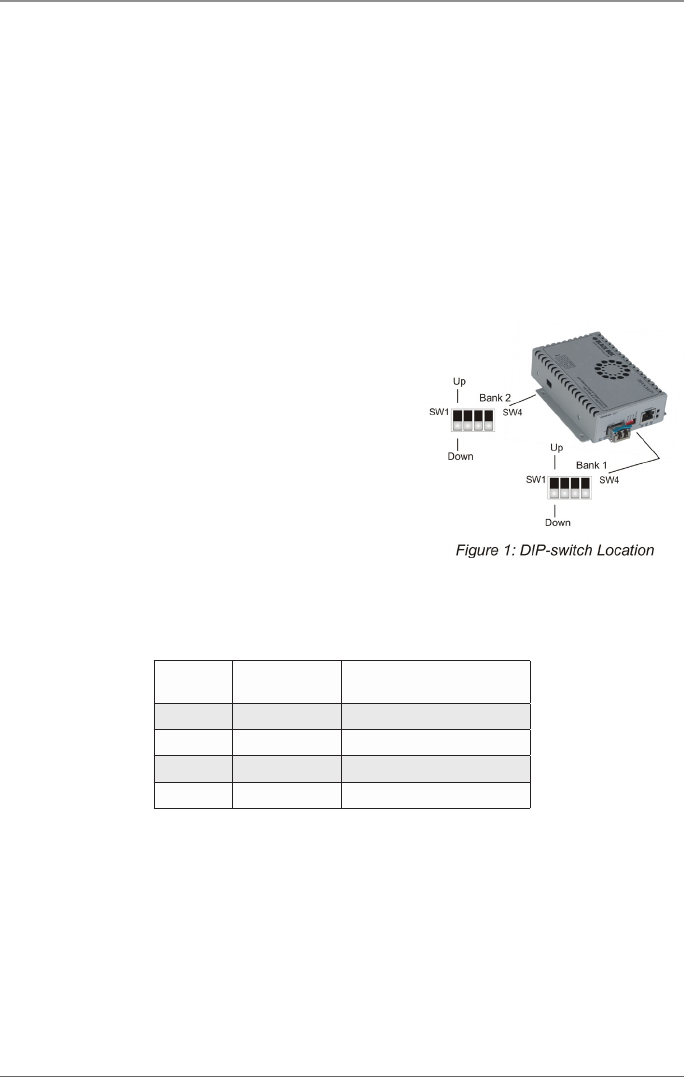 When this DIP-switch is in the UP “P1-LB” position, loopback is enabled on port P1. When