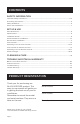 CONTENTS SAFETY INFORMATION Important Safety Instructions...........................................................................................................................................3-4 Grounding Instructions.......................................................................................................................................................... 5 Safety Guidelines....................................................................................................................