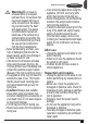 SVENSKA (Översättning av originalanvisningarna) Reparera eller byt ut skadade eller Skador som orsakas av långvarig trasiga delar på en auktoriserad verksanvändning av apparaten. Se till att ta tad. regelbundna raster när du använder Försök aldrig avlägsna eller byta ut en apparat under en längre period. andra delar än de som anges i den här Elektrisk säkerhet bruksanvisningen. Varning! Produkten Andras säkerhet @ måste skyddsjordas.