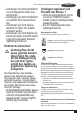 NEDERLANDS (Vertaling van de originele instructies) Gebruik het apparaat niet in een afgesloten ruimte die gevuld is met dampen afgegeven door verfverdunner op oliebasis, sommige anti-motstoffen, ontvlambaar stof of andere explosieve of giftige dampen. Controleer het vloertype bij de fabrikant. Gebruik de stoomreiniger niet op leer, met was gepolijste meubels of vloeren, synthetische vezels, fluweel of andere fijne stoomgevoelige materialen.