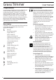 ENGLISH Cutting line • Take care against injury from line trimming blade (8) during unpacking and assembly and any excess line which may be cut off when the trimmer is first operated. • The cutting line (9) will continue to run for a short time after releasing the trigger switch. Under no circumstances should you attempt to stop the cutting line, always allow it to stop on its own. • Never fit metal cutting line. t Using your machine • Always use your machine in the manner outlined in this manual.