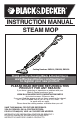 INSTRUCTION MANUAL STEAM MOP Catalog Numbers SM1610, SM1620, SM1630 Thank you for choosing Black & Decker! Go to www.BlackandDecker.com/NewOwner to register your new product. PLEASE READ BEFORE RETURNING THIS PRODUCT FOR ANY REASON: If you have a question or experience a problem with your Black & Decker purchase, go to WWW.BLACKANDDECKER.COM/INSTANTANSWERS for instant answers 24 hours a day. If you canʼt find the answer or do not have access to the internet, call 1-800-544-6986 from 8 a.m. to 5 p.m.