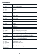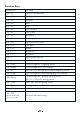 Function Keys Comando Function FN + F1 Abrir el reproductor multimedia FN + F2 Volumen - FN + F3 Volumen + FN + F4 Silenciar FN + F5 Detener FN + F6 Pista anterior FN + F7 Reproducir / Pausar FN + F8 Siguiente pista FN + F9 Abrir e-mail FN + F10 Abrir Explorador FN + F11 Calculadora FN + F12 Buscar FN + ↑ Brillo + FN + ↓ Brillo - FN + ← Velocidad de efecto de iluminación - FN + → Velocidad de efecto de iluminación + FN + Impr Pant Programa de 12 efectos de iluminación FN