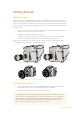Getting Started Attaching a Lens Getting started with your Blackmagic Studio Camera or Blackmagic Micro Studio Camera 4K is as simple as attaching a lens and turning the camera on. To remove the protective dust cap from the lens mount, hold down the locking button and rotate the cap counterclockwise until it is released. We recommend you always turn off your Blackmagic camera prior to attaching or removing a lens. To attach a lens: 1 Align the dot on your lens with the dot on the camera mount.