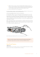 1 2 4 3 5 6 7 OPTICAL AUDIO L R STEREO OUT OPTICAL AUDIO L R STEREO OUT ETHERNET PoE+ SDI IN OPTICAL OUT / IN L - ANALOG AES/EBU R - ANALOG AES/EBU - T/C 8 SDI IN 9 OPTICAL OUT / IN 10 L - ANALOG AES/EBU R - ANALOG AES/EBU - T/C ETHERNET PoE+ 11 12 Connectors 1 Mini-B USB Port Connects to the Blackmagic Teranex Setup software via a Mac or Windows computer for adjusting settings and updating your Teranex Mini’s internal software.