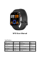 W10 User Manual Specifications Model W10 Waterproof IP68 Charging voltage 5V Bluetooth version BLE 5.2 Screen Size 1.69 inch Standby time 20 days Charging time 2.