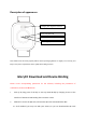 Description of appearance Charging line magnetic connector Heart rate photocell Heart rate/blood oxygen sensor Blood oxygen photoelectric element Note: Please wear the watch properly without the strap being tightened too tightly or too loosely, and keep it away from carpal. Please wear it tightly when taking exercises. GloryFit Download and Device Binding Please access corresponding permission for the software, including the permission of notification, location and Bluetooth.