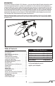 First Flight Preparation Flying Checklist ❏❏ Always turn the transmitter on first ❏❏ Plug the flight battery into the lead from the flybarless unit ❏❏ Allow the flybarless unit to initialize and arm properly ❏❏ Fly the model ❏❏ Land the model ❏❏ Unplug the flight battery from the flybarless unit ❏❏ Always turn the transmitter off last • • • • Remove and inspect the box contents Charge the flight battery Program your computer transmitter Install the fully charged flight battery in the helicopter • Bind