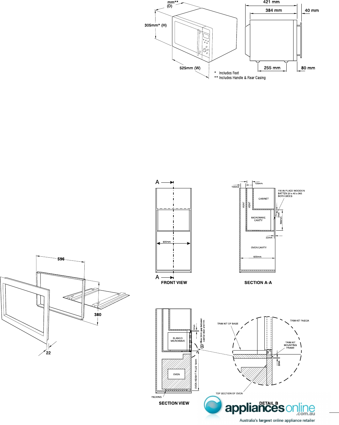 Oven cavity dimensions: 219H x 350W x 384Dmm