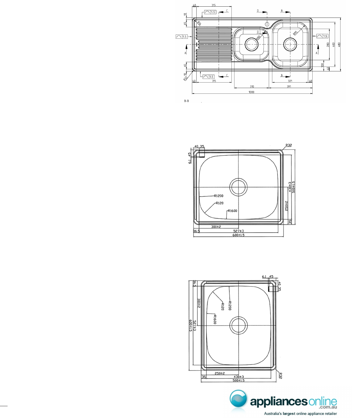 Cutout size: 1057 x 457mm (20mm Radius Corners)