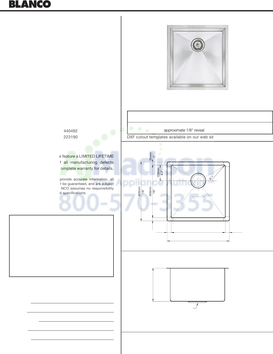 rear drain placement. Sink to be BLANCO Model
