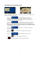 Die Kartenanzeige Die Kartenanzeige ist die wichtigste und am häufigsten verwendete Programmseite der Software. Der Pkw-Zeiger (standardmäßig ein blauer Pfeil) zeigt Ihre aktuelle Position an und die orangefarbene Linie die empfohlene Route. Auf der Seite werden Schaltflächen und Datenfelder angezeigt, die Sie bei der Navigation unterstützen. Während der Navigation werden Routeninformationen auf dem Display angezeigt.