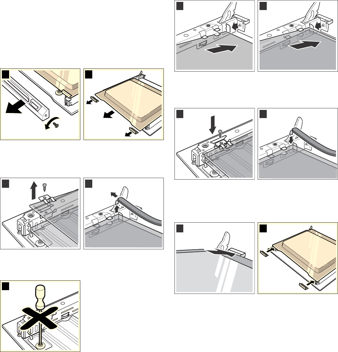 5. Glisser la vitre supérieure en arrière dans les deux fixations