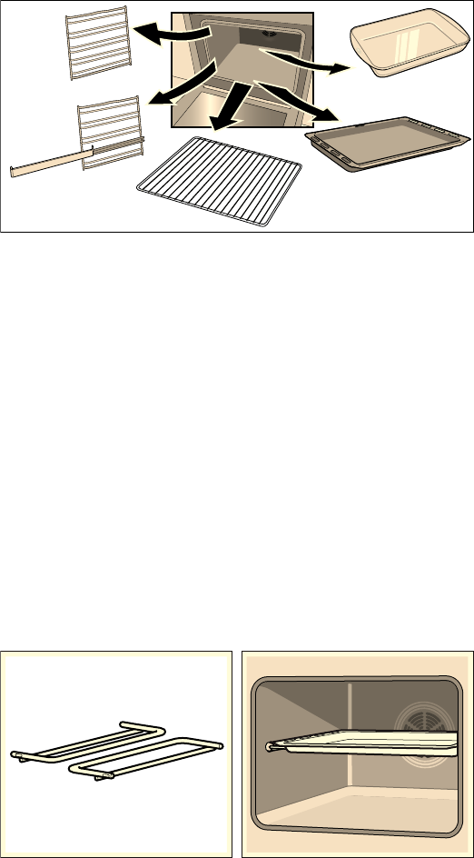 - Zubehör immer richtig herum in den Garraum schieben. Siehe Beschreibung Zubehör in der Gebrauchsanleitung.
