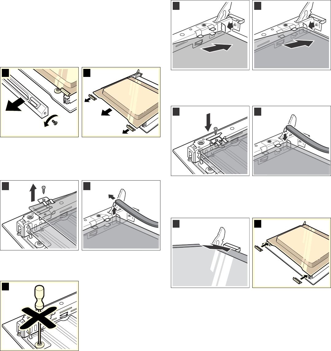 - 4. Dichtung unten an der Scheibe wieder einhaken (Bild D).