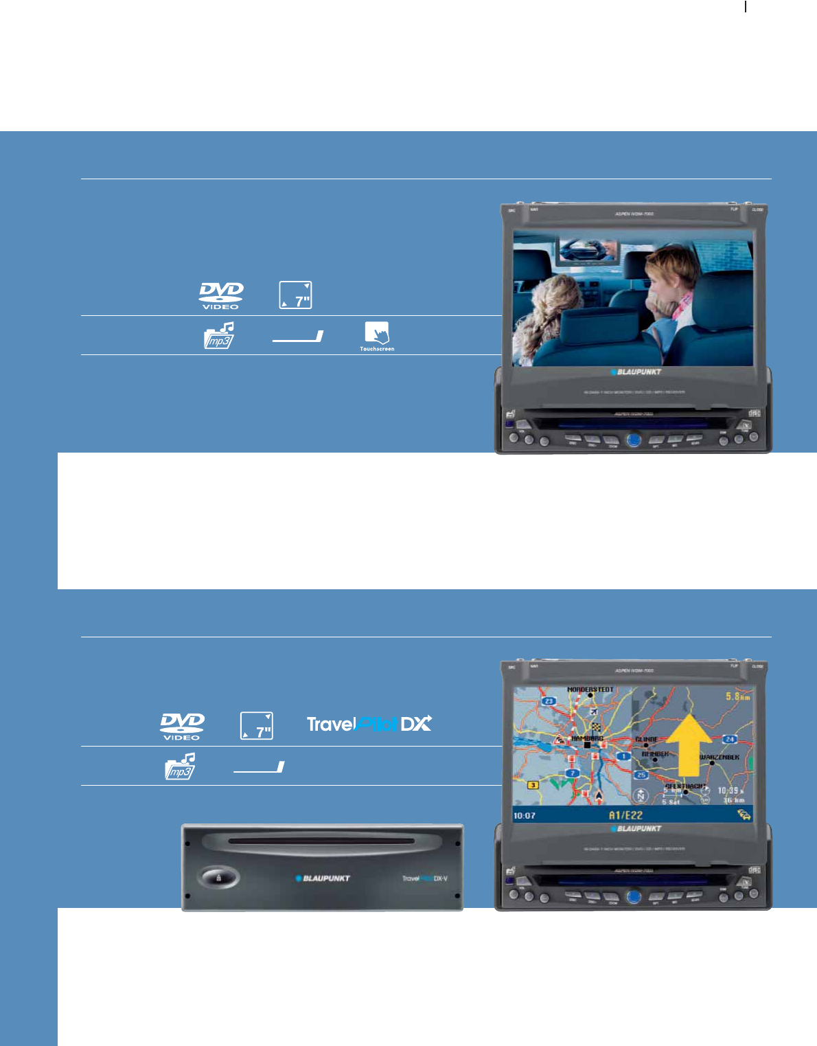 operation via a 7” TFT touch-panel monitor, a DVD player, an