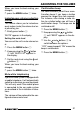 or button 5 to adjust the bass. When you have finished making your changes, ➮ Press the or button 5 to adjust the balance (right/left). When you have finished making your changes, ➮ Press the ➮ press the AUDIO button 9. ➮ press the AUDIO button 9. Adjusting the fader settings Adjusting the treble settings To adjust the front/back volume distribution (fader), To adjust the TREBLE, ➮ press the AUDIO button 9. ➮ Keep pressing the or button 5 until “TREB” appears in the display.