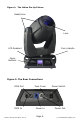 Figure 1: The Helios Pin-Up Picture Head/Arms Lens Carry Handle LCD Readout Menu Buttons Figure 2: The Rear Connections DMX Out DMX In Fuse Cover Power In Page 6 Helios™ Moving Head Spot - Rev.