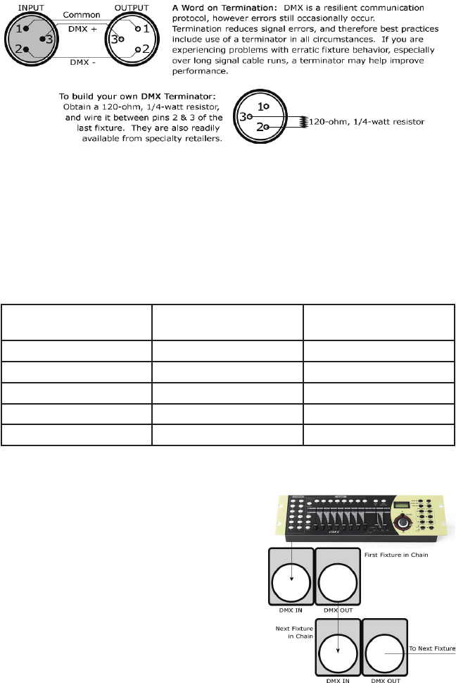 If you use a controller with a 5 pin DMX output connector, you will need to use a 5 pin to 3 pin adapter.