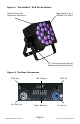 Figure 1: The RokBox™ EXA Pin-Up Picture High Power 6-in-1 RGBAW+UV LEDs Heavy-Duty Cast Aluminum Enclosure Dual Mounting Yokes & Adjustment/Locking Knobs Figure 2: The Rear Connections DMX Out AC Power Out LED Display DMX In Menu Buttons AC Power In RokBox™ EXA Manual Rev.