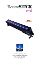 2. MEET THE TOUGHSTICK™ EXA LED FIXTURE CONTROL FEATURES • • • • • • • RGBAW+UV color mixing via 9x 15W 6-in-1 LEDs Variable electronic strobe & dimmer Built-in color & chase macros via DMX Built-in automated programs via master/slave RGBAW+UV color mixing ability in standalone mode Easy to use 4-button LED control panel Flicker-free constant-current 400hz LED driver ADDITIONAL FEATURES • Built like a brick hmm hmm with anodized aluminum enclosure and tempered glass top.