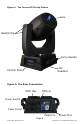 Figure 1: The Torrent F5 Pin-Up Picture Lens Head/Arms Carry Handle LCD Readout Control Panel Figure 2: The Rear Connections DMX Out DMX In Power Switch Fuse Cover Power In Page 6 Torrent F5™ Manual Rev.