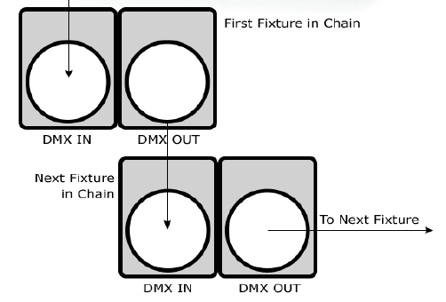 DMX cable to the output (female) 3 pin connector of