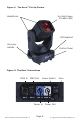 Figure 1: The Nova™ Pin-Up Picture 4x High Power 25-watt LEDs Head/Arms LCD Readout Carrying Handle Control Panel Figure 2: The Rear Connections DMX In DMX Out Power Switch Power In Page 6 Nova™ Moving Head User Manual Rev.