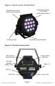 Figure 1: Puck Pro Zoom™ Pin-Up Picture High Power QuadColor LEDs w/Zoomable Optics Anodized Extruded Aluminum Enclosure Dual Mounting Brackets Locking Knobs Figure 2: The Rear Connections Control Panel Buttons LED Control Panel Display Carrying Handle/ Safety Point Power In DMX In DMX Out The Puck Pro Zoom Manual Rev.