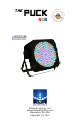 Figure 1: The Puck: Remote Series RGB Pin-Up Picture Dual Mounting Yokes High Power LEDs Ridiculously thin! Remote Control Receiver Figure 2: The Rear Connections DMX Out LED Control Panel Puck Couch Potato RGB Manual Rev.