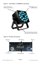 Figure 1: The RokBox™ 5 RGBAW Pin-Up Picture High Power 5-in-1 RGBAW LEDs Heavy-Duty Cast Aluminum Enclosure Dual Mounting Yokes & Adjustment/Locking Knobs Figure 2: The Rear Connections DMX Out AC Power Out LED Display DMX In Menu Buttons AC Power In RokBox 5 RGBAW Manual Rev.