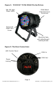 Figure 1: ToughPAR™ Zoom RGBAW Pin-Up Picture 36x 3W High Power LEDs IP65-Rated Cast Aluminum Enclosure Tempered Glass Lens Cover Mounting Yoke with Adjustment/ Locking Knobs Figure 2: The Rear Connections LED Control Panel DMX In DMX Out Power Linking Page 6 ToughPAR Zoom RGBAW Manual Rev.