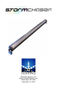 Figure 1: The StormChaser™ Pin-Up Picture High Power LED’s Mounting Bracket & Adjustment Screw Anodized Aluminum Enclosure Figure 2: The Rear Connections DMX In DMX Out Microphone Left End AC Power In MENU UP DOWN ENTER LED Display Menu Right End Menu Buttons AC Power Out StormChaser Manual Rev.