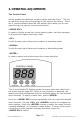4. OPERATING ADJUSTMENTS The Control Panel All the goodies and different modes possible with the Flurry™ TRI are accessed by using the control panel on the front of the fixture. There are 4 control buttons below the LED display which allow you to navigate through the various control panel menus. Is used to initially access the control panel system, and also navigate to the previous higher-level menu item. Scrolls through menu items and numbers in ascending order.