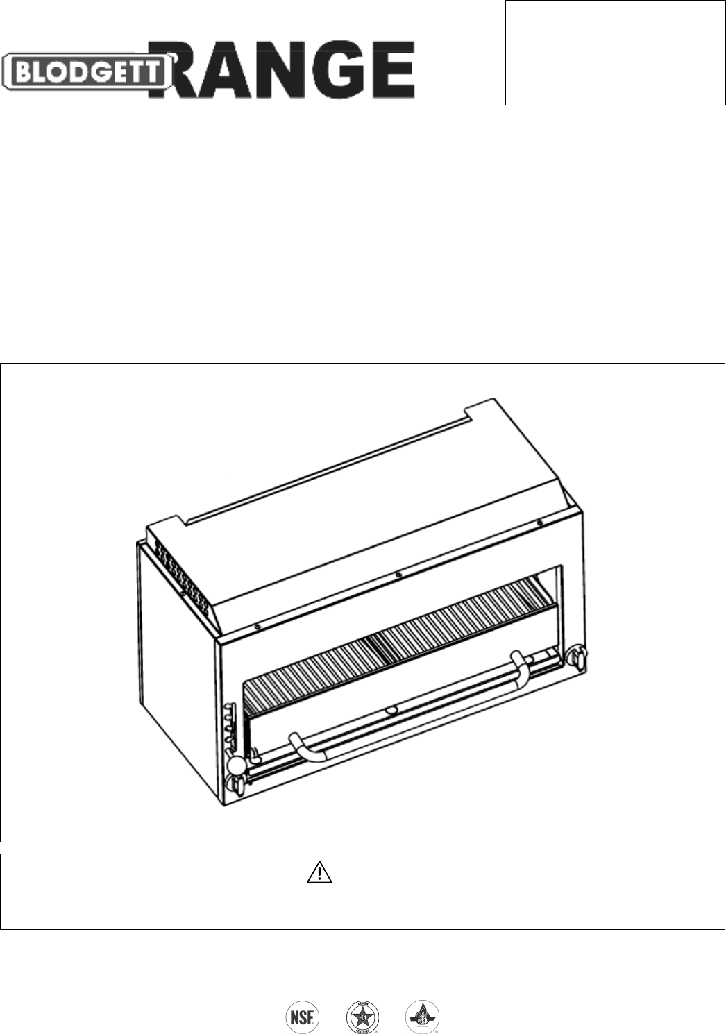 INFRARED/RADIANT COMPACT BROILER SERVICE WARNING ADJUSTMENTS AND SERVICE WORK MAY BE PERFORMED ONLY BY A QUALIFIED TECHNICIAN WHO IS EXPERIENCED IN, AND KNOWLEDGEABLE OF, THE OPERATION OF COMMERCIAL COOKING EQUIPMENT. TO ASSURE YOUR CONFIDENCE, CONTACT YOUR AUTHORIZED SERVICE AGENCY FOR RELIABLE SERVICE, DEPENDABLE ADVICE OR OTHER ASSISTANCE, AND FOR GENUINE FACTORY PARTS. NOTICE INSTALLATION OF OTHER THAN GENUINE BLODGETT RANGE RANGE PARTS WILL VOID THE WARRANTY ON THIS EQUIPMENT.