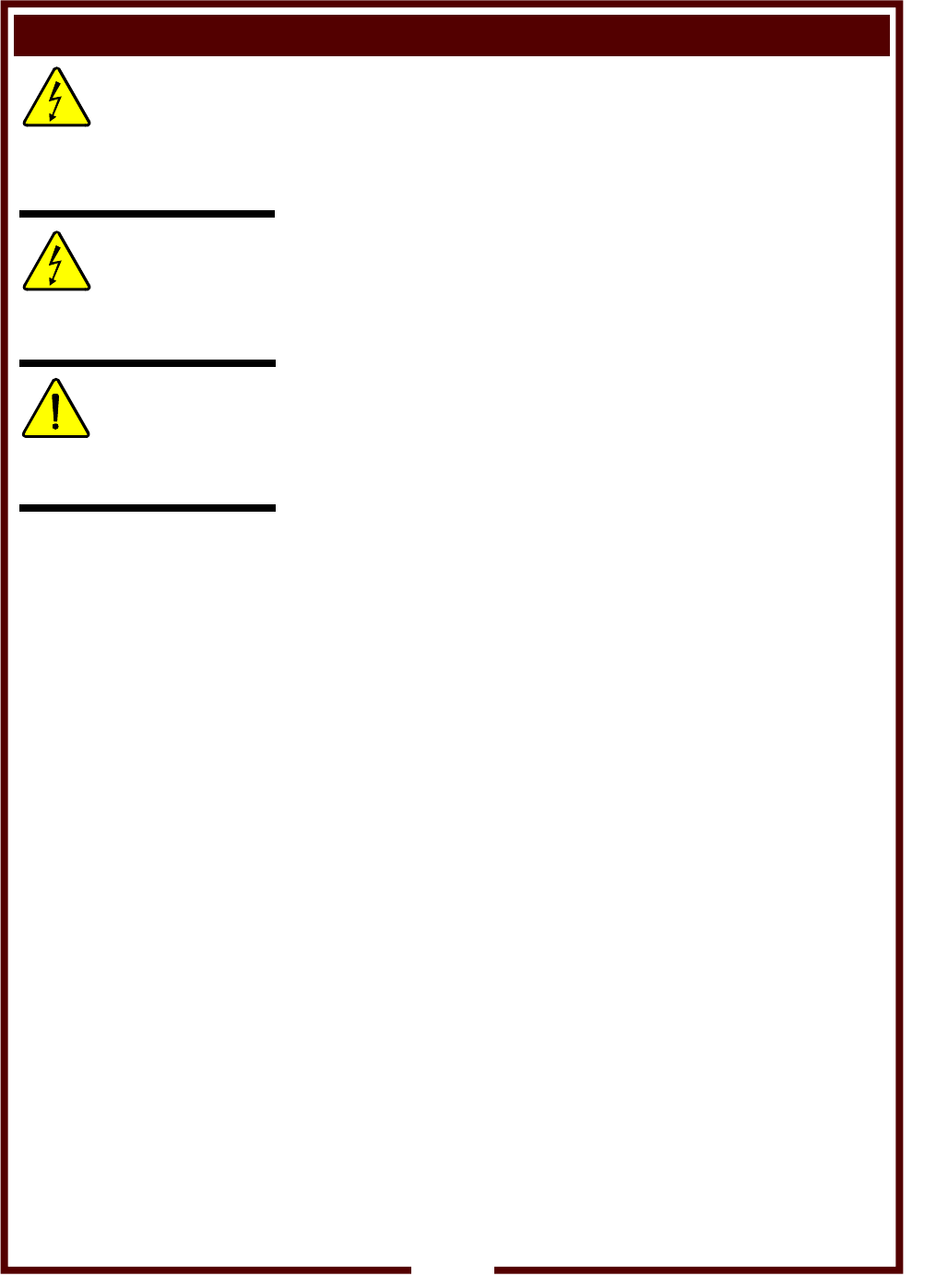 causing a potential fire and/or electric shock hazard. Contact your